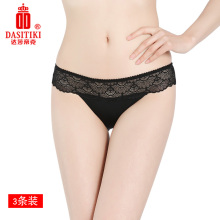 3条装性感透气蕾丝内裤女时尚纯色大码纯棉裆女士三角裤春夏