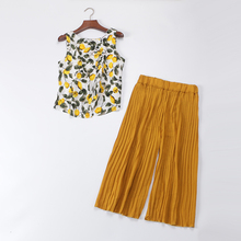 B33-4321新款2017时尚无袖上衣压褶高腰松紧阔腿裤两件套女装名媛