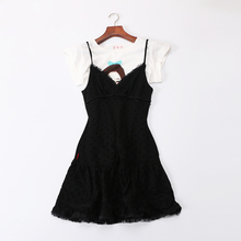 新款2017时尚短袖T恤吊带唯美连衣裙两件套女神范夏季1336