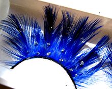 批发宝蓝色羽毛加银色闪粉艺术夸张假睫毛个性写真影视舞台YM81