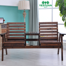 怡森园户外实木桌椅炭化防腐木双人靠背椅带茶几长公园休闲椅