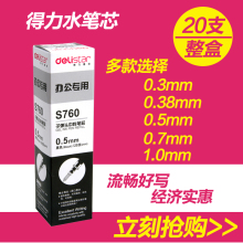 新品得力中性笔笔芯0.5/0.3/0.38/0.7/1.0mm水笔替芯办公黑色红色