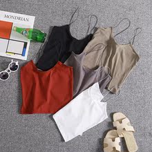 细细肩带慵懒感修身短款吊带衫 简约纯色显瘦内搭打底背心2件包邮