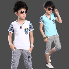5儿童装6男童夏装套装2017新款8夏季9中大童11男孩夏天短袖13周岁
