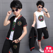 儿童装男童夏装套装2017新款8中大童10男孩夏季短袖三件套12-15岁
