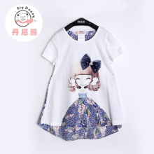 丹尼熊童装2017夏装新品女童纯棉短袖T恤卡通可爱碎花中大童上衣