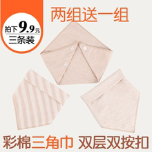 婴儿三角巾彩棉宝宝口水巾夏 儿童纯棉围嘴兜头巾加厚双层按扣春