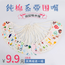 5条装 婴儿口水巾秋冬儿童宝宝小围嘴纯棉双层新生儿口水兜系带款