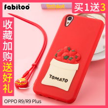 法芘兔oppor9手机壳r9女款硅胶软壳防摔r9plus红色全包保护套挂绳