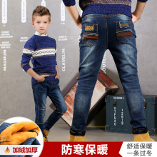 童装春装冬男童裤子牛仔裤童裤中大童儿童加绒加厚韩版宝宝长裤潮