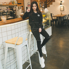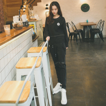 2017春季新款韩版宽松时尚运动休闲套装女圆领上衣+休闲裤两件套