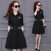 长袖连衣裙春秋女2017新款韩版收腰显瘦a字裙春季中长款运动裙子
