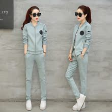 春秋新款运动服女学生长袖套装时尚休闲跑步卫衣圆领开衫2件套潮