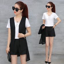 女装夏装2017新款潮韩版时尚西装马甲小香风气质三件套短裤套装女