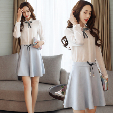 2017春季新款女装两件套打底连衣裙女长袖衬衫修身半身裙时尚套装
