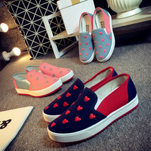 春秋新款帆布鞋女鞋厚底套脚学生乐福板鞋小桃心平底女韩版潮