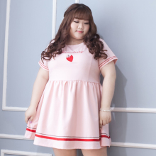 大码女装夏日新款胖妹妹200斤短袖厚雪纺粉色可爱草莓连衣裙04937