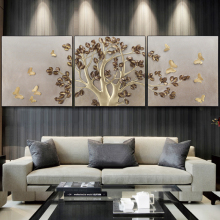 浮雕客厅装饰画三联挂画沙发背景墙画餐厅现代简约立体壁画发财树