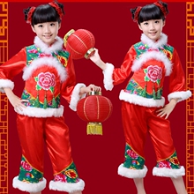 圣诞儿童演出服装女童民族舞秧歌舞表演服幼儿喜庆开门红舞蹈衣服