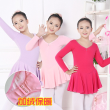 儿童舞蹈服秋冬季加绒加厚长袖练功裙女童纯棉保暖芭蕾跳舞裙