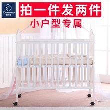 鑫娃娃婴儿床实木白小户型宝宝bb床多功能新生儿床可折叠带蚊帐
