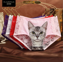 女防走光3D小猫咪喵星人猫头图案无痕内裤蕾丝性感中腰档纯棉