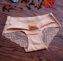 蕾丝花边一片式冰丝无痕女士三角内裤 性感内裤女裆部纯棉