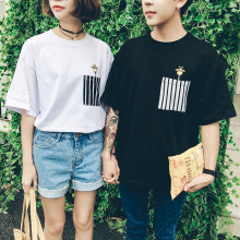 ulzzang夏装韩国男女半袖宽松百搭学生班服情侣短袖t恤韩版潮款bf