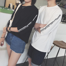 情侣半袖新款2017潮t恤女五分袖中学生韩版宽松bf情侣装夏装班服