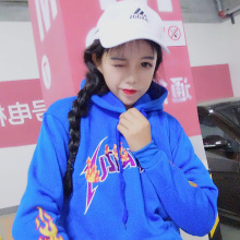 韩版ulzzang原宿BF学院风火焰刺绣宽松加绒长袖套头连帽卫衣女潮