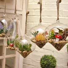 现代田园玻璃仿真植物微景观吊瓶装饰挂件店铺家居阳台创意装饰品