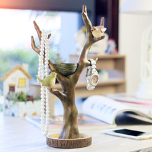 创意美式复古树枝小鸟首饰架装饰招财摆件玄关钥匙架戒指收纳摆饰