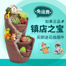 美式乡村空中花园多层阳台花园办公室桌面装饰摆件多肉植物圆花盆