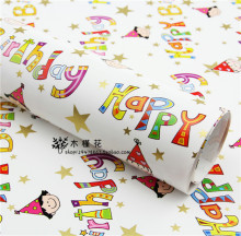 可爱卡通描金生日快乐高档商务礼品包装纸书皮纸鲜花纸墙纸手工纸