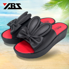 鞋博士春新款 女士蝴蝶结坡跟露趾凉鞋 松糕鞋家居拖鞋 休闲单鞋