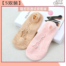 蕾丝船袜女纯棉浅口硅胶防滑隐形袜春夏季超薄款低帮纯地板袜短袜