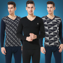 男冬季加绒加厚保暖内衣紧身青年打底套装秋衣秋裤V领鸡心领大码
