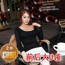 女士超薄性感大U领打底衫莫代尔低领大圆领修紧身长袖内衣显瘦T恤