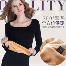 女士大领保暖内衣加厚加绒单件塑身低领秋衣紧身双层显瘦防寒上衣