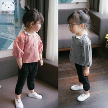 女童装春秋3女宝宝5女婴儿1-6岁春装七分袖格子衬衫长裤子2件套装