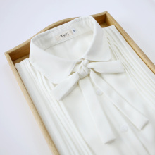 娃娃领小清新蝴蝶结花边立领系带衬衫女白色学生上衣长袖宽松衬衣