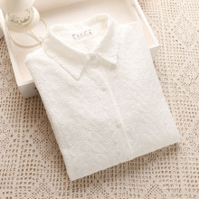 春装新款日系蕾丝绣花打底白衬衣女刺绣镂空翻领百搭全棉长袖衬衫