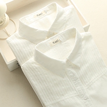 春秋新款日系小清新纯色长袖衬衫打底衫韩版纯棉修身文艺白衬衣女