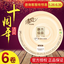 清风大盘纸原木纯品商务用纸3层平纹180米6卷珍宝卷纸整箱包邮