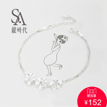银时代 花与爱丽丝 花朵925银手链闺蜜手环韩版时尚饰品礼物女款