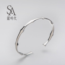 银时代 银手镯女 竹节990足银气质开口银镯子银饰品青竹时尚礼物