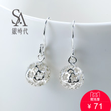 银时代 双生花 花朵镂空花朵耳环圆球韩版耳饰925银饰品 女 礼物