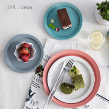 亿嘉创意韩式可爱家用纯色陶瓷色釉圆形平盘菜盘牛排盘子 马卡龙
