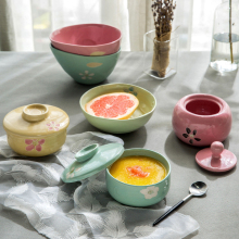 ijarl亿嘉韩式家用陶瓷骨瓷小米饭碗面碗大汤碗带盖蒸碗炖盅 格林