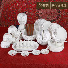 景德镇陶瓷餐具56头瓷器饭碗碟大小勺筷子盘子汤碗骨瓷套装